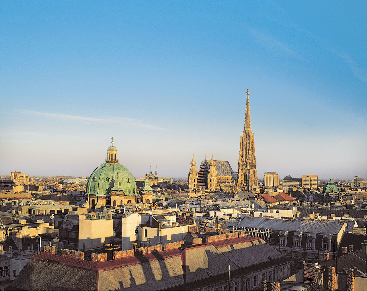 Por la mañana visita a pie por el casco histórico (sin transporte) recorriendo aquellos lugares de Viena por donde los famosos músicos austríacos solían realizar sus paseos. Empezaremos con la Opera de Viena, una de las más famosas del mundo. La visita interior nos dará una idea de la magnitud de este famoso edificio. Partiendo de la Ópera nos acercamos al Palacio Hofburg, que alberga la Escuela de Equitación Española, los Apartamentos Imperiales, la Colección de Plata y el Museo Sisí. Pasaremos por la Iglesia Michaelerkirche y andaremos por las calles lujosas Kohlmarkt y Graben y hasta llegar a la catedral de San Esteban (visitas exteriores).